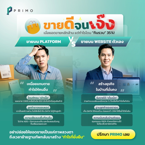 ยอดขายปังแต่กำไรหายเพราะค่าธรรมเนียมแพลตฟอร์ม? เปลี่ยนมาสร้างระบบขายของตัวเองเพื่อลดค่า GP และรักษาฐานลูกค้าอย่างยั่งยืนกับ PRIMO