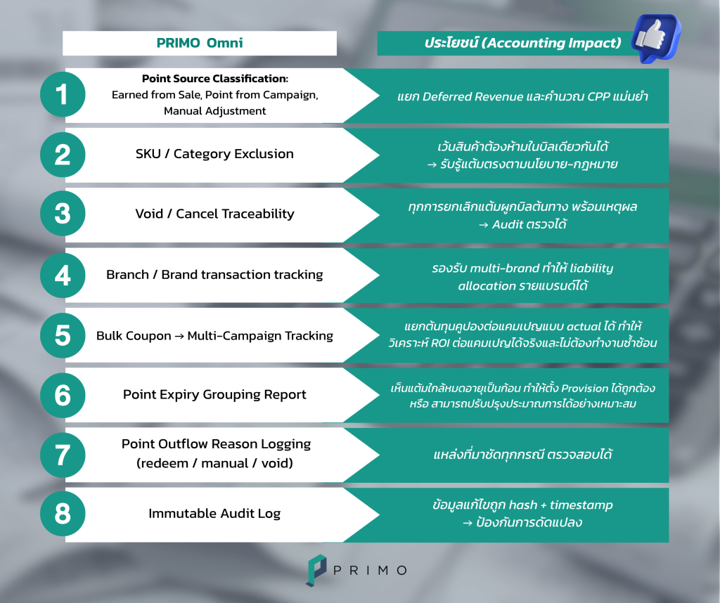 Many businesses overlook a critical truth: A Loyalty system not designed for accounting = a financial time bomb. Without proper financial logic, your reward system can lead to massive discrepancies during month-end closing. PRIMO bridges this gap, empowering marketing teams while ensuring the finance department can close books, verify data, and pass audits with absolute confidence.
